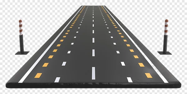 Pave the way for your next design project with this striking 3D rendered highway road PNG. Featuring crisp white lane markings, vibrant yellow safety markers, and eye-catching brown and white striped bollards on a transparent background, this high-quality image offers incredible versatility. The dynamic perspective view of the road vanishing into the distance is perfect for web design, architectural visualizations, game assets, digital art, presentations, or any project needing a modern road element. Download this free, isolated PNG to effortlessly integrate a dynamic transportation theme into your work today!