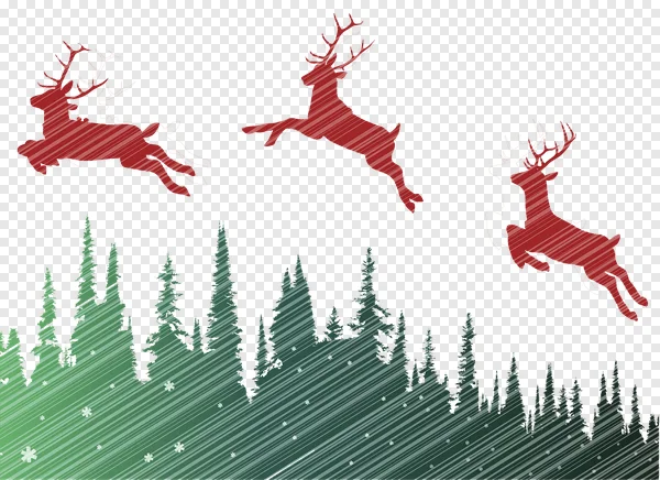Download our free, high-quality Abstract Christmas Reindeer & Pine Trees PNG image. This modern festive graphic features stylized red reindeer soaring over a whimsical green winter forest with geometric pine trees and falling snowflakes. Perfect for holiday cards, digital art, social media posts, website banners, or any creative project needing a unique touch. Get this beautiful, pixelated holiday design for your Christmas celebrations and spread cheer! Available as a transparent PNG for easy integration into your designs.