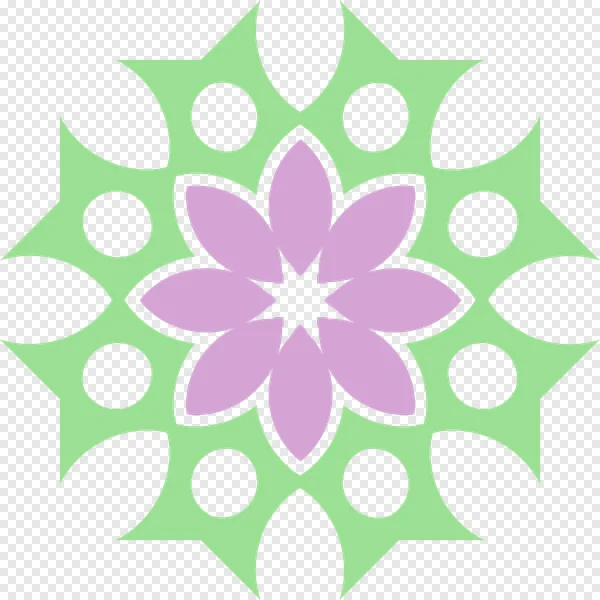Discover this captivating abstract floral mandala PNG, available for free download. This high-quality graphic features a beautiful central purple six-petal flower, elegantly framed by a vibrant light green eight-pointed geometric design, accented with striking black circular elements. Perfect for adding a modern and artistic touch to your digital projects, presentations, invitations, crafting, and web design. Its transparent background ensures seamless integration into any creative work. Enhance your designs with this unique, symmetrical art piece today!