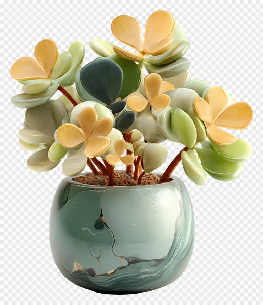 Elevate your creative projects with this exquisite free PNG of an abstract glossy succulent plant. This high-quality 3D render features beautiful cream, green, and soft orange-yellow leaves with a unique translucent, glass-like texture, elegantly arranged in a sleek, round mint green pot showcasing artistic marbling and subtle crack details. With its transparent background, this modern botanical artwork is ideal for graphic design, website elements, digital art, presentations, and chic home decor themes. Download this unique, stylized plant illustration instantly and add a touch of contemporary elegance to your work!