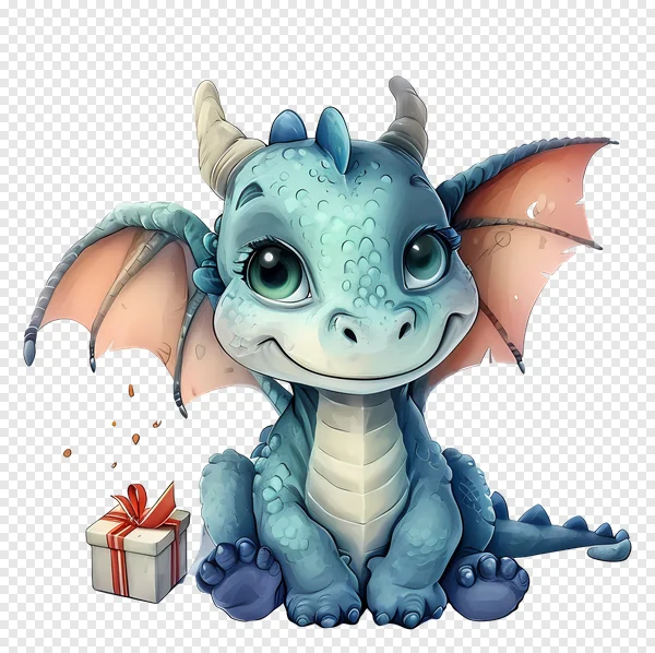 Unwrap some magic with this utterly adorable blue baby dragon PNG, perfect for enchanting your creative projects! This charming fantasy creature features big, expressive green eyes, small horns, and a heartwarming smile, sitting sweetly beside a white gift box adorned with a vibrant red ribbon. Ideal for adding a whimsical touch to birthday invitations, greeting cards, digital scrapbooking, children's book illustrations, or any graphic design needing a sprinkle of magic. This high-quality, free PNG image boasts a transparent background for effortless integration. Download now and let this cute dragon ignite your imagination!
