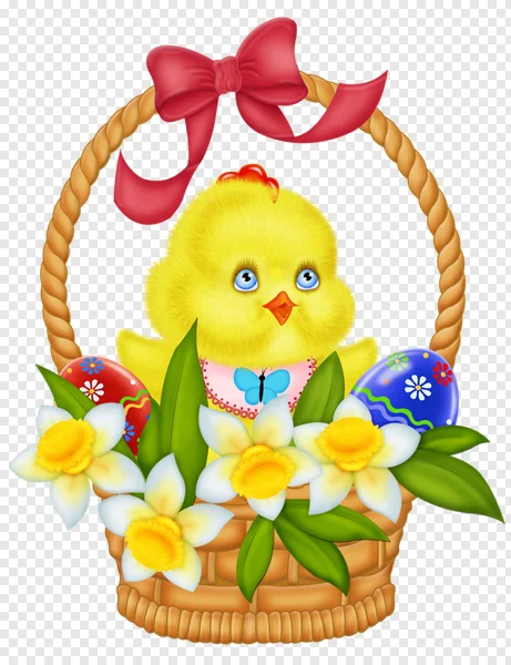 Bring a touch of springtime joy to your designs with this charming free PNG image! Featuring an irresistibly fluffy yellow Easter chick nestled in a cozy wicker basket, adorned with a sweet red bow. Beside our cute feathered friend are vibrantly decorated Easter eggs and fresh white daffodils with bright yellow centers, all on a transparent background. Perfect for holiday greeting cards, scrapbooking, digital art, social media posts, school projects, or any festive Easter celebration. Download this high-quality, adorable clip art instantly and add a cheerful, whimsical touch to your creative endeavors.