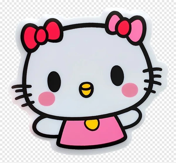 Tags: Hello Kitty Japanese pop culture PNG Sanrio adorable anime cartoon character cute graphic iconic illustration kawaii mascot pink bows pink dress rosy cheeks sticker transparent background white cat