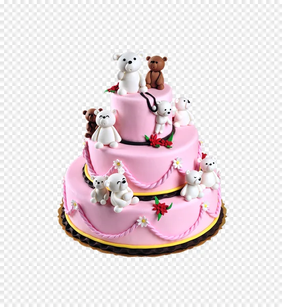 Download this enchanting high-quality PNG of a delightful pink tiered cake, adorned with an array of charming white and brown teddy bears. This adorable celebration cake features intricate fondant details, including twisted pink ropes, delicate red and white flowers, and a golden scalloped base. Perfect for enhancing your baby shower invitations, birthday party designs, digital scrapbooking, educational materials, or any project needing a touch of sweetness. Get this cute teddy bear cake image for free and add a whimsical charm to your creative works today!