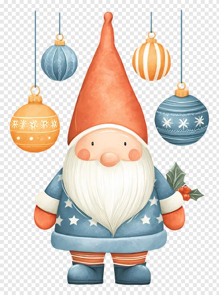 Tags: Christmas berries Christmas character Christmas gnome Christmas ornaments blue baubles cute gnome festive illustration free download holiday gnome holiday season holly orange baubles red hat snowflake pattern star pattern transparent PNG watercolor gnome whimsical white beard winter decor