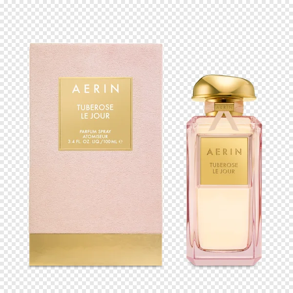 Download a high-quality free PNG image of the elegant AERIN Tuberose Le Jour perfume. This stunning visual features both the luxurious pink textured box with a gold accent and the exquisite 100ml fragrance bottle, adorned with a delicate ribbon and shining gold cap. Perfect for beauty blogs, e-commerce graphics, design projects, or mood boards. Get this premium, transparent background image of the iconic Tuberose Le Jour parfum spray to enhance your creative work. Free for personal and commercial use!