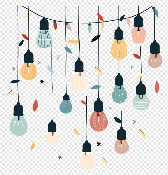 Tags: aesthetic botanical cozy decorative lights doodle fairy lights festive garland graphic element hand-drawn holiday lights illustration leaves lightbulbs party decor pastel colors string lights transparent PNG warm light whimsical