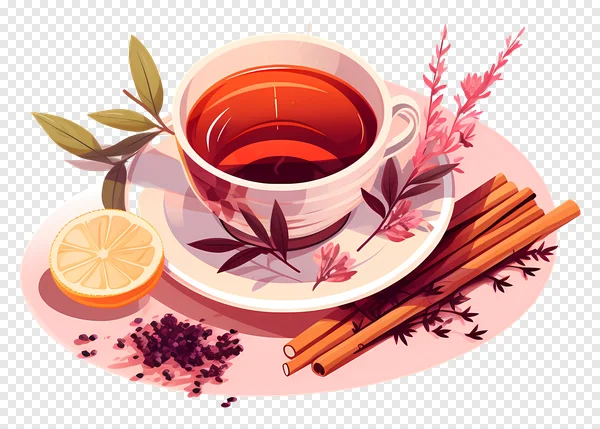 Download this beautiful, free PNG illustration featuring a steaming cup of warm herbal tea, perfect for cozy moments. This aesthetic flat design includes a vibrant slice of lemon, aromatic cinnamon sticks, dark elderberries, and delicate green leaves, all set on an elegant saucer. Ideal for blogs, health & wellness websites, recipe cards, social media, or any project needing a touch of natural comfort. The transparent background makes it easy to integrate into your designs. Get your high-quality, royalty-free herbal tea PNG today and add a warm, inviting feel to your creative work!