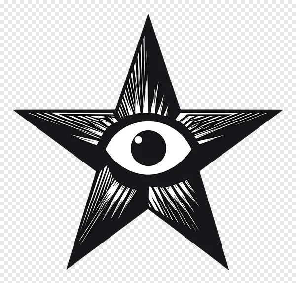 Discover this striking All-Seeing Eye Star PNG, available for free download. Featuring a bold white eye with radiant lines nestled within a classic five-pointed black star, this graphic offers a powerful mystic and symbolic aesthetic. Its monochromatic black and white design makes it incredibly versatile for a variety of projects, from spiritual and occult themes to modern abstract art, logos, or tattoo designs. Perfect for adding a touch of mystery, insight, and an ancient symbolic vibe to your creative work, presentations, digital art, or print materials. Get your high-resolution transparent PNG image now and elevate your designs with this unique, powerful icon, free for personal and commercial use!