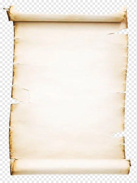Download this high-quality ancient scroll PNG image for free! Featuring a realistic blank parchment paper texture with torn edges, this versatile graphic is perfect for historical designs, fantasy art, medieval themes, certificates, maps, and more. Use it to add an authentic, aged look to your projects. Transparent background for easy integration. Get your free download now!