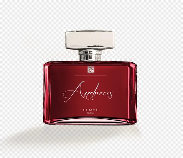 Download this stunning high-quality PNG image of an 'Andreas Homme' luxury men's perfume bottle. Featuring a sleek, deep red glass bottle with an elegant silver cap and sophisticated 'Andreas' script, this cologne bottle exudes premium style. The transparent background makes it an ideal asset for product mockups, advertising campaigns, blog posts, website graphics, or any creative design project related to the fragrance and beauty industry. Enhance your marketing materials and digital content with this free, professional-grade men's fragrance PNG.