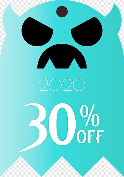Download this free PNG image of an adorable yet grumpy turquoise monster announcing a 30% off sale! Perfect for creating eye-catching sale banners, promotional graphics, or adding a fun, quirky touch to your website or social media. High-quality, transparent background for easy integration into your designs. Grab this unique monster graphic now and boost your marketing efforts! Includes '2020' text. Free for personal and commercial use.