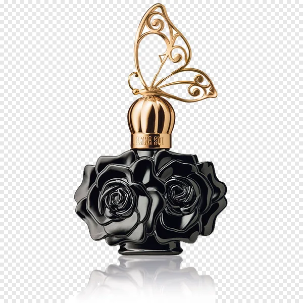 Download this stunning, high-quality free PNG of an Anna Sui perfume bottle, featuring a unique design with a glossy black rose base and an intricate gold butterfly cap. This elegant and luxurious fragrance bottle, likely from the Anna Sui Fantasia line, is perfect for beauty blogs, e-commerce, graphic design projects, or adding a touch of sophisticated gothic whimsy to your creative work. Get this transparent background image instantly for free and enhance your designs with a chic, iconic beauty product.