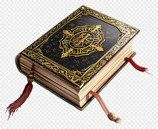 Download this stunning high-resolution PNG of an antique Islamic book with a beautifully ornate golden cover. Perfect for historical projects, religious artwork, design elements, or adding a touch of vintage elegance to your creations. This free PNG features intricate Arabic calligraphy and detailed gold embellishments. Enhance your designs with this unique and culturally rich image – download now and use it freely!