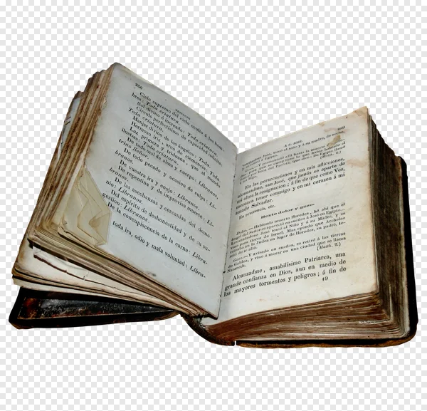 Discover the allure of the past with our free Antique Open Book PNG. This high-resolution image features beautifully aged, worn pages displaying intricate Spanish text, a classic distressed binding, and visible page numbers, evoking a sense of history and profound wisdom. Perfect for adding a vintage touch to your historical projects, literary designs, educational materials, or spiritual content. Download this unique ancient text for free to enhance websites, graphic design, presentations, and more with timeless elegance and a scholarly aesthetic. Bring your creative visions to life with this evocative, free PNG image.