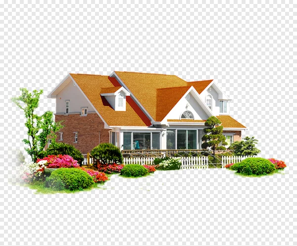 Download this stunning, high-quality PNG of a beautiful modern house with a transparent background for free. Featuring a charming suburban home with a warm orange shingle roof, white and brick facade, and an exquisitely manicured garden vibrant with pink, red, and white flowers, lush green bushes, and a classic white picket fence. Perfect for real estate listings, architectural presentations, home renovation projects, digital scrapbooking, graphic design, and adding a touch of elegance to any visual content. Get your ideal dream home image today!