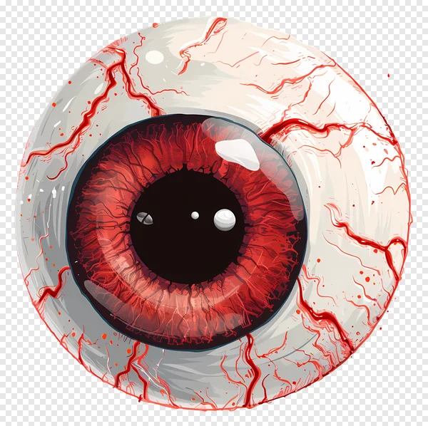 Unleash the eerie with our striking Bloodshot Eyeball PNG. This high-resolution, free download features an intensely red iris surrounded by a white sclera, intricately veined with numerous blood-red capillaries. Its creepy and detailed appearance makes it perfect for a wide range of frightening projects, including Halloween decorations, horror game assets, spooky posters, costume design elements, or any graphic demanding a terrifying visual impact. The transparent background allows for seamless integration into your creative work. Get this chilling eye graphic instantly and elevate your scary designs today, absolutely free!