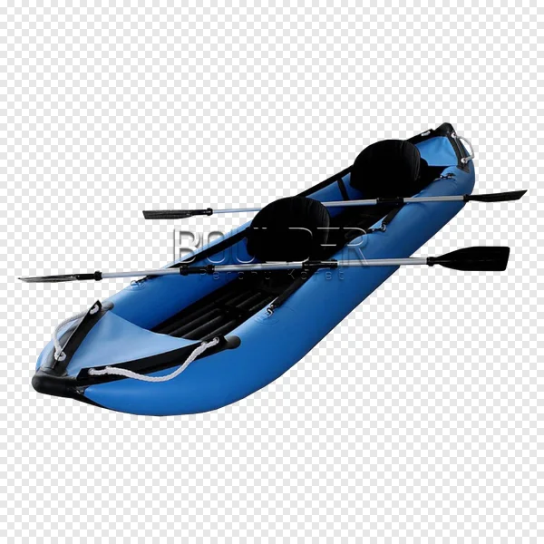 Download a high-quality, transparent PNG image of a vibrant blue inflatable kayak with black paddles. Perfect for website graphics, presentations, or any project needing a watersports illustration. This free kayak PNG is ideal for designers, bloggers, and outdoor enthusiasts. Get instant access and enhance your visuals today! No attribution required.