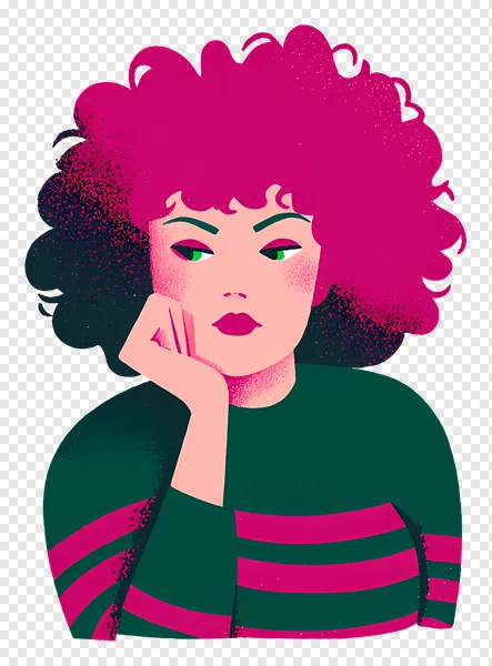 Download this eye-catching free PNG illustration featuring a confident woman with vibrant hot pink curly hair and striking green eyes. Her pensive expression, bold pink lips, and stylish dark teal striped sweater create a unique, modern aesthetic. Perfect for graphic design projects, social media, blog posts, or personal use. This high-quality digital artwork comes with a transparent background, making it versatile for various creative applications. Add a pop of color and personality to your designs instantly! Get your free download now.
