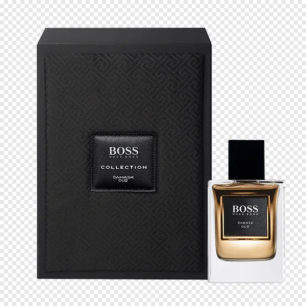 Download a high-quality, free PNG image of the iconic BOSS Hugo Boss Damask Oud perfume. This stunning visual features the luxurious fragrance bottle with its rich golden liquid and sleek black cap, prominently displaying the 'BOSS DAMASK OUD' label. It's perfectly complemented by its elegantly textured black gift box, showcasing the 'BOSS COLLECTION DAMASK OUD' branding. Ideal for graphic designers, content creators, or anyone needing premium perfume imagery. Use this transparent background PNG for e-commerce product listings, beauty blogs, marketing campaigns, social media posts, or digital mockups. Elevate your design projects with this sophisticated and exclusive men's fragrance asset. Available for instant free download!