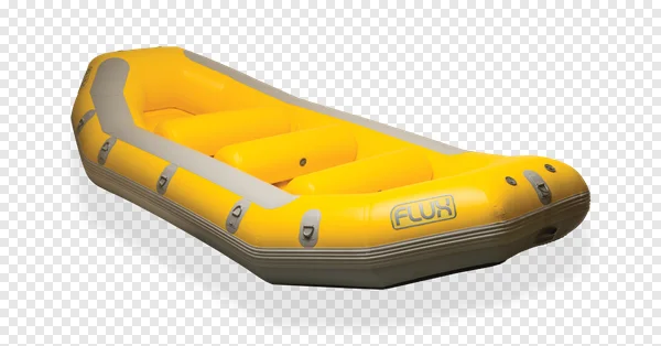 Download this vibrant yellow inflatable raft PNG image for free, perfect for your next creative project! This high-quality graphic features a sleek, durable design with grey trim and the distinctive 'FLUX' logo, captured with a transparent background for easy integration. Whether you're designing for a water sports website, an outdoor adventure blog, or need an eye-catching element for marketing materials, this whitewater raft PNG is ideal. Enhance your visuals with this dynamic asset, symbolizing excitement and recreation. Get your transparent background rafting boat graphic now and bring your designs to life with a splash!