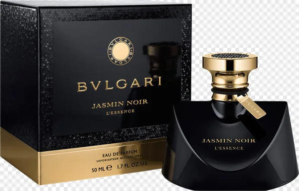 Download a high-quality, transparent PNG image of a Bvlgari Jasmin Noir L'Essence perfume bottle. Perfect for graphic design projects, presentations, website backgrounds, or adding a touch of luxury to your creations. This free PNG features the iconic Bvlgari logo and elegant bottle design. Enhance your visuals with this stunning, royalty-free image – download now!