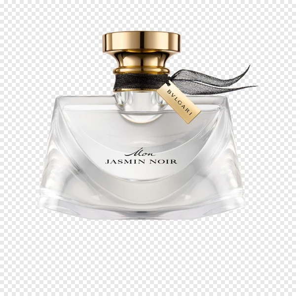 Download this stunning, high-quality Bvlgari Mon Jasmin Noir perfume bottle PNG for free. Featuring an elegant clear glass bottle, a sophisticated gold cap, and a chic black mesh ribbon with a gold Bvlgari tag, this luxury fragrance image is perfect for beauty blogs, e-commerce, graphic design projects, or presentations. Its transparent background makes it ideal for seamless integration into any design. Enhance your content with this exquisite product shot; get your free Bvlgari perfume bottle cutout now!