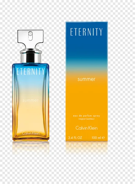 Download a high-quality, transparent PNG image of Calvin Klein's Eternity Summer perfume bottle and packaging. Perfect for graphic design projects, website mockups, marketing materials, or social media posts. This free PNG features the iconic blue and orange gradient bottle with clear branding. Enhance your designs with this professional-looking perfume graphic – download now and use it freely!