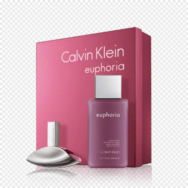 Discover and download this exquisite free PNG image of the Calvin Klein Euphoria fragrance gift set. This high-resolution photo showcases the elegant, curvaceous Euphoria perfume bottle in silver and a coordinating purple bath and shower cream (200ml), beautifully presented in its iconic magenta-pink branded box. Ideal for cosmetic reviews, e-commerce listings, beauty editorials, or enhancing any design project with a touch of luxury and sophistication. Get this transparent background PNG today to elevate your visual content!