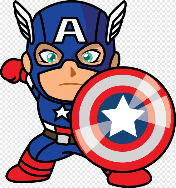 Download this adorable Captain America cartoon PNG image for free! Perfect for kids' projects, fan art, graphic design, or adding a patriotic touch to your creations. This high-quality, transparent background image features a cute, stylized Captain America with his iconic shield and helmet. Enhance your designs with this vibrant and instantly recognizable superhero graphic. Get your free download now!