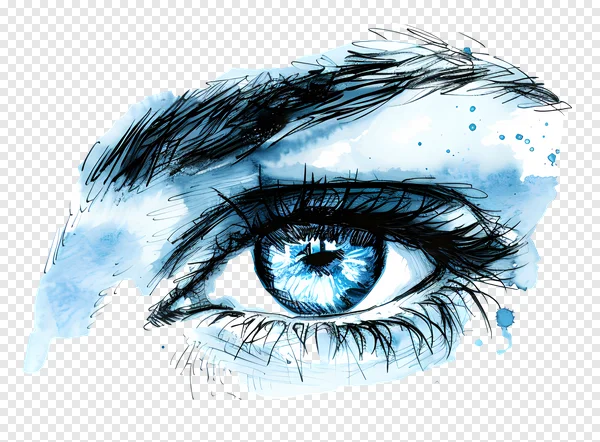 Dive into the artistic depth of this captivating blue eye PNG image, blending expressive watercolor techniques with intricate ink line art. This vibrant illustration features a striking eye with long, dramatic eyelashes and an intense blue iris, set against a transparent background. Perfect for graphic designers, artists, and content creators, this free download is ideal for adding an artistic touch to your web projects, social media posts, presentations, or any creative endeavor. Explore the beauty of digital artistry and download this unique eye illustration today!
