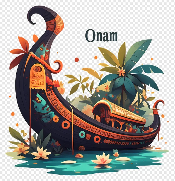 Tags: Chundan Vallam Indian festival Kerala Onam Vallamkali boat race cultural illustration decorative elements digital art festival celebration festive art free download lotus flower snake boat traditional boat transparent PNG tropical leaves vector graphic vibrant colors water lily