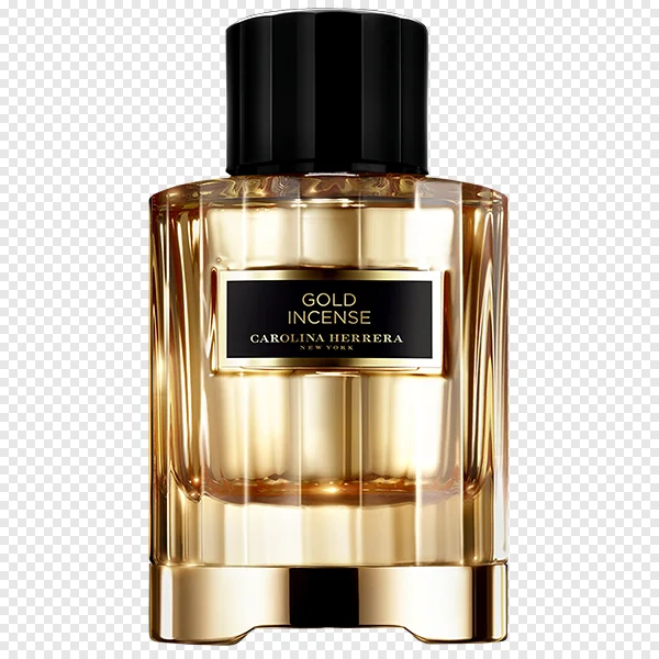 Elevate your designs with this stunning free PNG of the Carolina Herrera Gold Incense perfume bottle. This luxurious fragrance features a radiant gold liquid encased in an elegantly fluted clear glass bottle, topped with a sophisticated black cap. The prominent black label displays 'GOLD INCENSE CAROLINA HERRERA NEW YORK' in exquisite gold lettering. Perfect for beauty blogs, product mockups, e-commerce graphics, or any project requiring a touch of high-end elegance. Download this transparent PNG image now to add a glamorous and professional touch to your creative work!