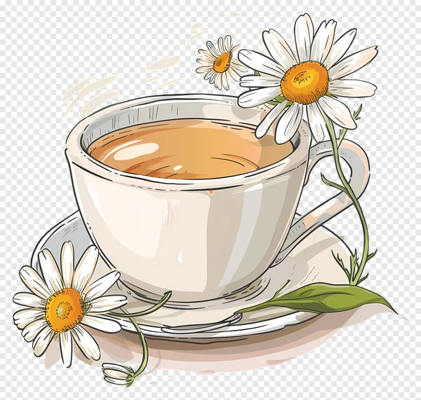 Download this beautiful chamomile tea cup PNG image for free! Perfect for adding a touch of warmth and tranquility to your designs. This high-quality illustration features a delicate teacup filled with tea, surrounded by fresh chamomile flowers and leaves. Ideal for blogs, websites, invitations, or any project needing a calming, floral aesthetic. Transparent background for easy integration. Get your free download now!