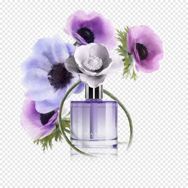 Download this beautiful high-resolution PNG image featuring a Chando perfume bottle surrounded by delicate anemone flowers. Perfect for graphic design projects, website backgrounds, social media posts, or adding a touch of elegance to your creations. This free PNG has a transparent background for easy integration. Enhance your visuals with this stunning floral and cosmetic design element – download now!