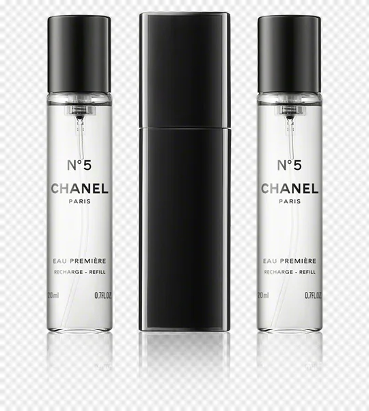 Download this exquisite free PNG image of Chanel N°5 Eau Première perfume refills and their elegant black case. This high-quality asset features two clear 20ml fragrance bottles, showcasing the iconic luxury brand's commitment to sophistication and convenience. Ideal for beauty bloggers, graphic designers, marketing materials, or personal projects, its transparent background ensures seamless integration into any design. Elevate your creative work with this timeless fragrance element, available for instant free download.