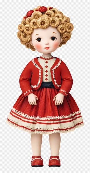 Download this adorable, high-quality 3D rendered doll PNG for free! This charming character features bright golden curly hair adorned with cute red bows, rosy cheeks, and large expressive eyes. She's dressed in a delightful red gown with intricate white lace detailing on the sleeves and skirt, complemented by a chic black belt and matching red shoes. Perfect for children's book illustrations, educational materials, birthday invitations, craft projects, or adding a touch of whimsical, vintage charm to your digital designs. Enhance your creative projects with this cute, full-body illustration – available now as a transparent PNG.