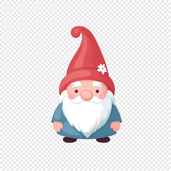Discover this adorable cartoon gnome PNG, ready for your creative projects! This charming mythical creature features a vibrant red pointy hat adorned with a delicate white flower, a fluffy white beard, a friendly pink nose, and a cozy blue tunic. Perfect for holiday designs, garden themes, scrapbooking, digital art, party invitations, or adding a touch of whimsy to any craft. Download this high-quality, transparent background gnome illustration for free and bring a magical touch to your next design. Ideal for personal and commercial use.