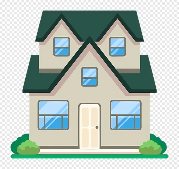Download this charming free PNG icon featuring a classic two-story residential house, perfect for your next design project. This detailed illustration showcases a welcoming home with a dark green roof, light beige walls, multiple blue-tinted windows, a inviting front door, and cute green bushes at the base. Ideal for real estate websites, architectural concepts, educational content, mobile app design, graphic design, or adding a friendly touch to presentations. Get this high-quality image with a transparent background instantly and elevate your visuals!