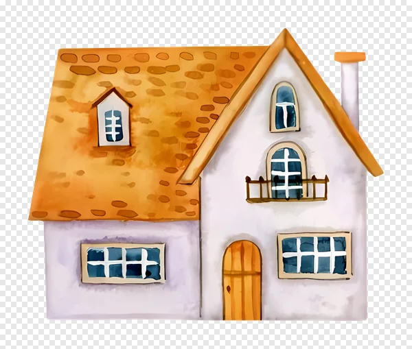 Discover this enchanting watercolor house PNG, perfect for adding a whimsical touch to your creative projects! This charming, hand-painted illustration features a cozy cottage with a rustic orange roof, light purple walls, a delightful arched wooden door, and quaint windows, including a small balcony. Ideal for storybook illustrations, children's crafts, graphic design, digital art, or web backgrounds. Download this transparent, high-quality PNG for free and bring your designs to life with a touch of fairy-tale charm and rustic elegance. Instantly enhance your work with this unique and versatile graphic element!