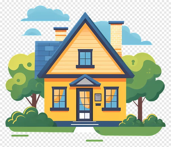 Download this delightful, free PNG illustration featuring a warm yellow house with a prominent blue roof, multiple windows, and a welcoming front door. This cozy residential home is nestled amidst lush green trees, vibrant bushes, and a neatly manicured lawn, all under a sky with soft blue clouds. Perfect for real estate promotions, architectural concepts, educational materials, web design, or adding a charming touch to any creative project. Grab this high-quality, transparent background vector-style graphic for your personal and commercial use today!