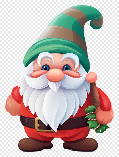 Download this enchanting free PNG of a cheerful cartoon gnome, perfect for adding a touch of magic to your holiday creations! This delightful dwarf features a long white beard, bright blue eyes, a pointy green and brown striped hat, and a vibrant red outfit. He holds a charming staff adorned with festive holly leaves and berries. Ideal for Christmas cards, digital designs, scrapbooking, festive decorations, and more. Get this high-quality, transparent background illustration for all your festive projects now!