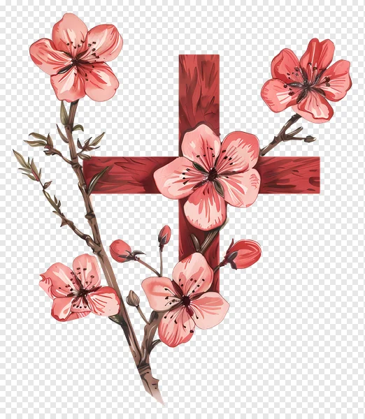 Tags: Christian symbol Easter PNG bloom branch cherry blossom cross faith floral cross free download graphic illustration nature peach flowers pink flowers red cross religious cross spirituality spring flowers transparent wooden cross