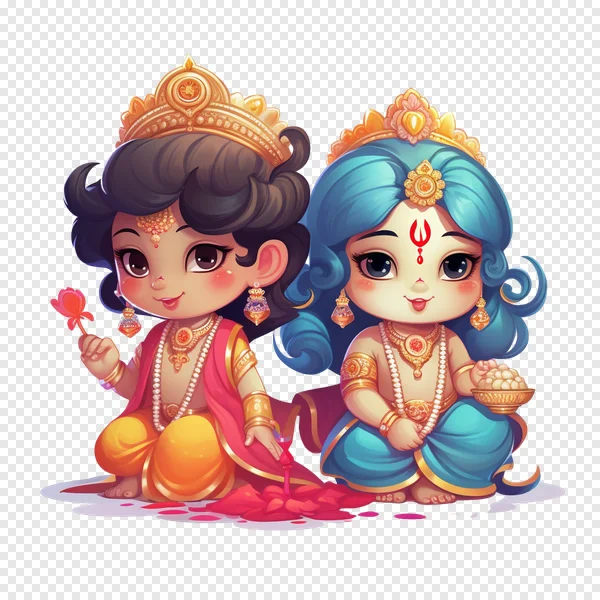 Tags: Adorable Cartoon Characters Celebration Chibi Cute Krishna Cute Radha Digital Illustration Divine Art Festive Gulal Hindu Deities Hindu Mythology Holi Festival Indian Festival Janmashtami Kids friendly Spiritual Sweets Traditional Indian Transparent PNG