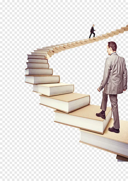 Download this powerful and symbolic free PNG image of a businessman climbing a staircase made of books! Perfect for illustrating concepts like education, career advancement, learning, success, and personal growth. Use it for presentations, websites, articles, or any project needing a visual metaphor for achieving goals through knowledge. High-resolution and transparent background for easy integration. Get your free download now!