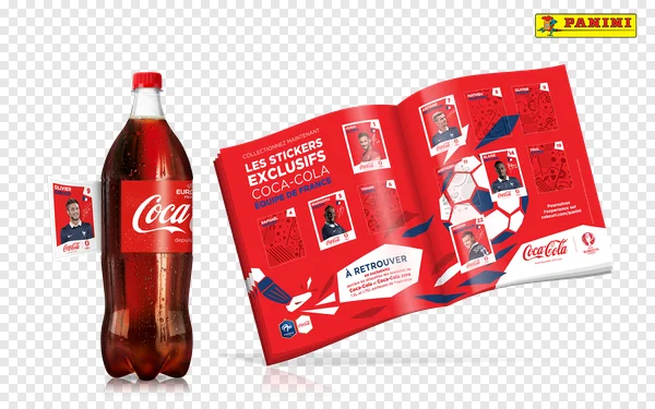 Tags: Coca-Cola Euro Euro 2024 France Kylian Mbappe Olivier Giroud Panini beverage bottle drink football marketing packaging png promotional red soccer sports stickers white