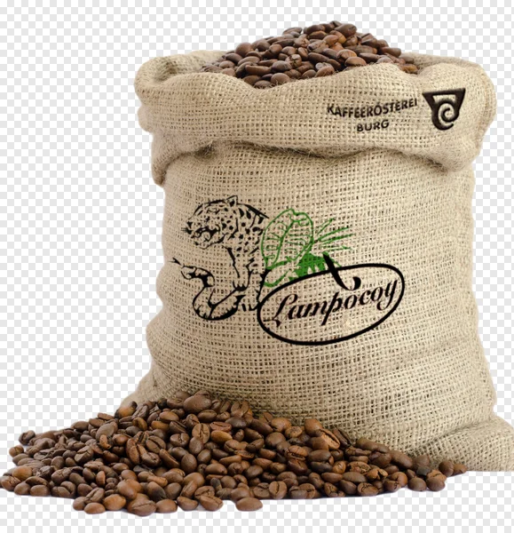 Download this high-quality PNG image of a full burlap sack overflowing with roasted coffee beans! Perfect for websites, blogs, presentations, or any project needing a coffee-related visual. Featuring a vintage-style 'Campocoy' logo and 'Kaffeerösterei Burg' text, this transparent background image is ideal for creating eye-catching designs. Get your free download now and add a rich, aromatic touch to your work!