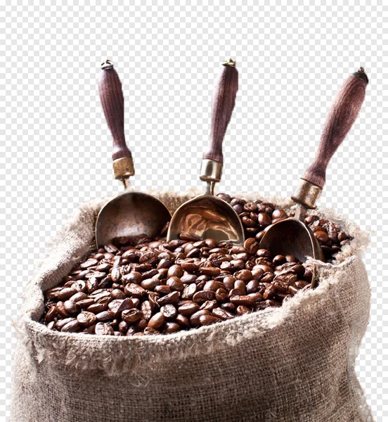 Download this high-quality PNG image of coffee beans overflowing from a burlap sack, complete with vintage coffee scoops! Perfect for coffee shop designs, food blogs, website graphics, or any project needing a rich, aromatic touch. This transparent background PNG is free to use for personal and commercial projects. Enhance your designs with this beautiful coffee bean illustration today!