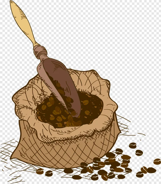 Download this high-quality, free PNG image of a burlap sack overflowing with coffee beans and a scoop! Perfect for coffee shop designs, food blogs, packaging mockups, or any project needing a rustic, artisanal coffee vibe. This illustration features a hand-drawn style, ideal for adding a warm and inviting touch to your work. Get instant access – no attribution required! Enhance your designs with this versatile coffee bean graphic today.