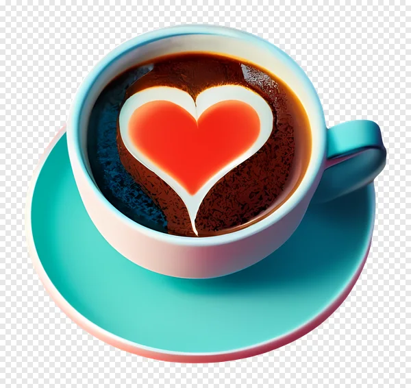 Download this beautiful, high-quality PNG image of a turquoise coffee cup with a heart-shaped coffee design! Perfect for Valentine's Day, love-themed projects, coffee blogs, or adding a warm touch to your designs. This free PNG features a vibrant red heart in a steaming cup of coffee, isolated on a black background. Use it for social media graphics, website backgrounds, or any creative project. Get your free download now!